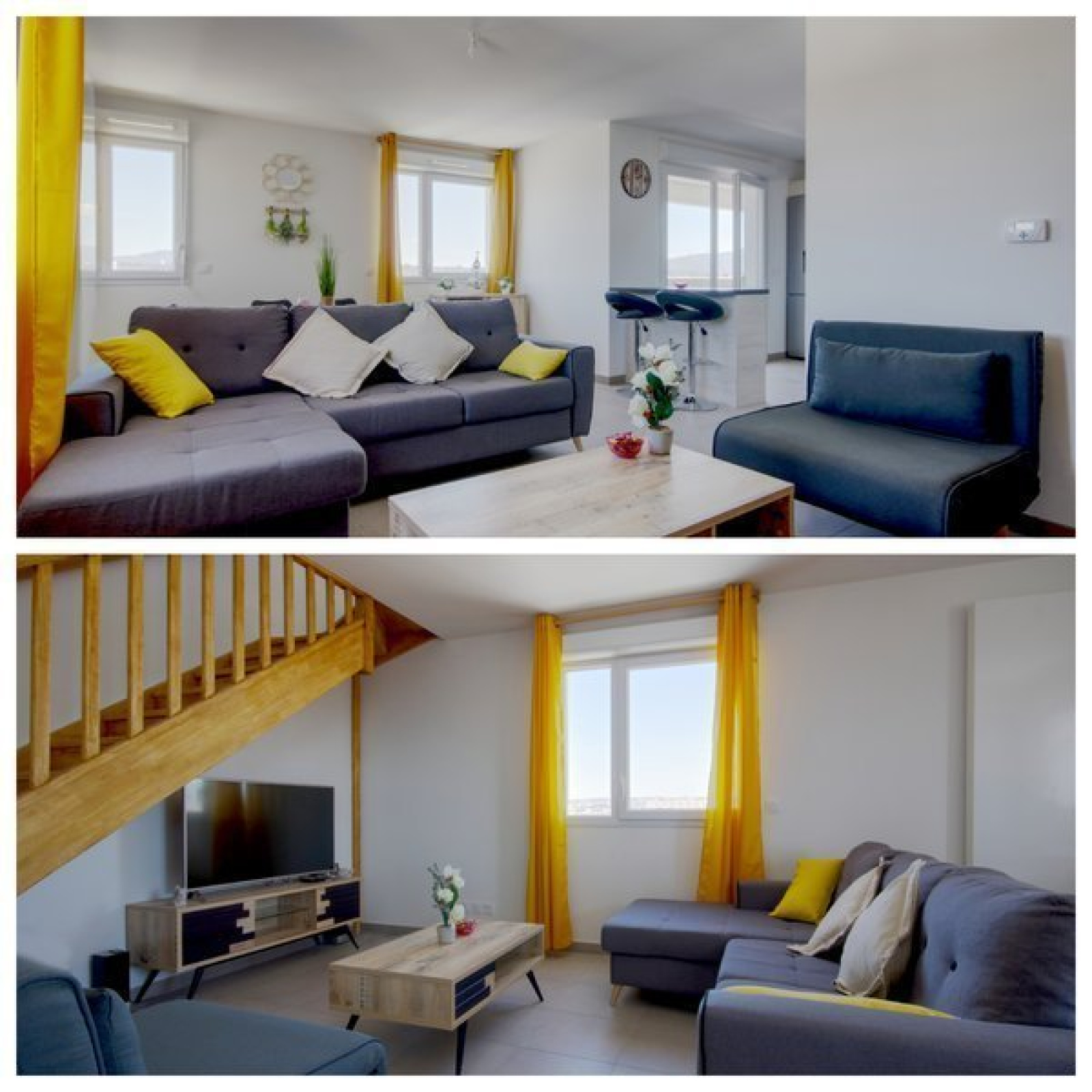 Sejour ,Cuisine ouverte. aménagée. et équip. avec hotte frigo four plaques ,Chambre ,Chambre ,salle d'eau et wc à l'intérieur ,salle d'eau et wc à l'intérieur ,2 Balcon ,parking