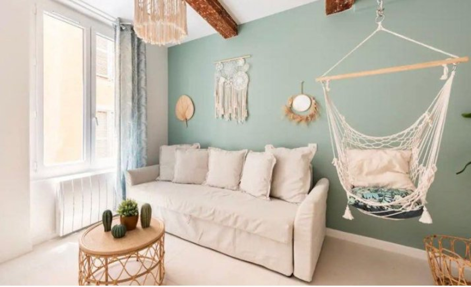 Hall ,Piece principale ,Cuisine ouverte. aménagée. et équip. avec hotte frigo four micro-ondes plaques ,Chambre ,salle d'eau , Wc independant.