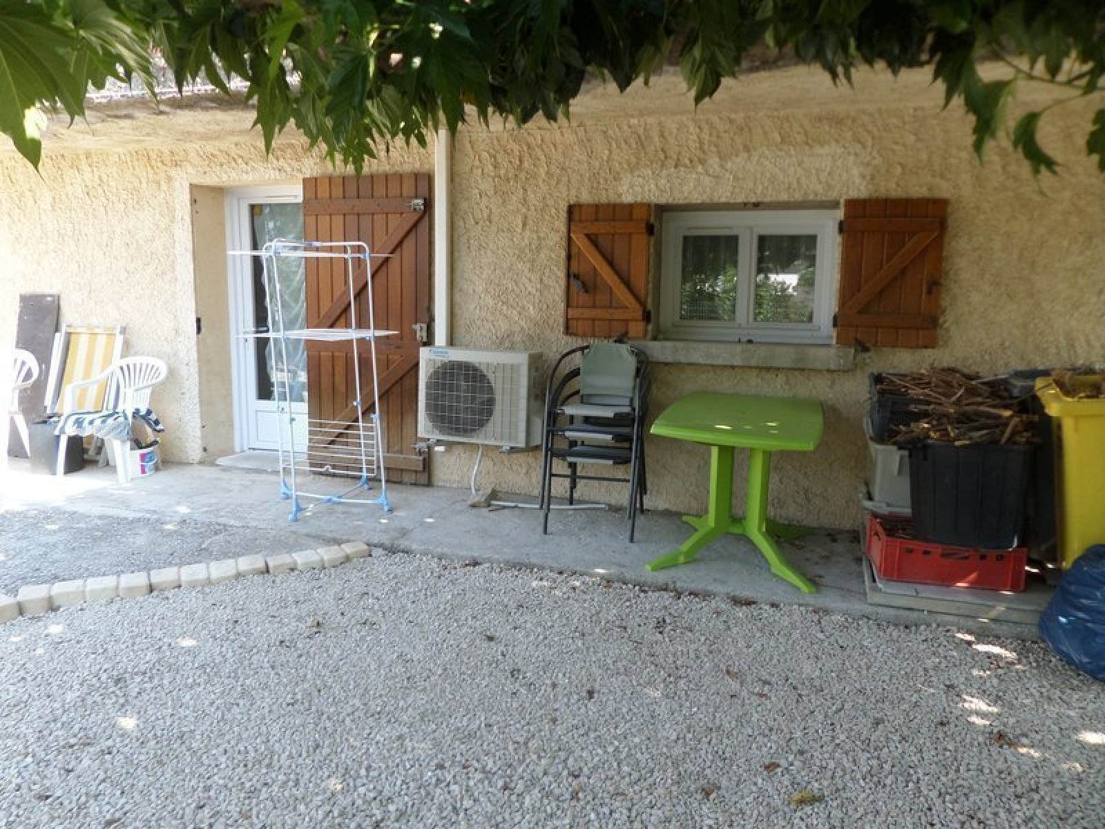 Sejour ,Cuisine ouverte avec comptoir. aménagée. et équip. avec frigo, micro-ondes et plaques ,Chambre avec 2 lits (140 et 90) et dressing ,salle d'eau avec wc , Jardin arboré (commun) , Parking.