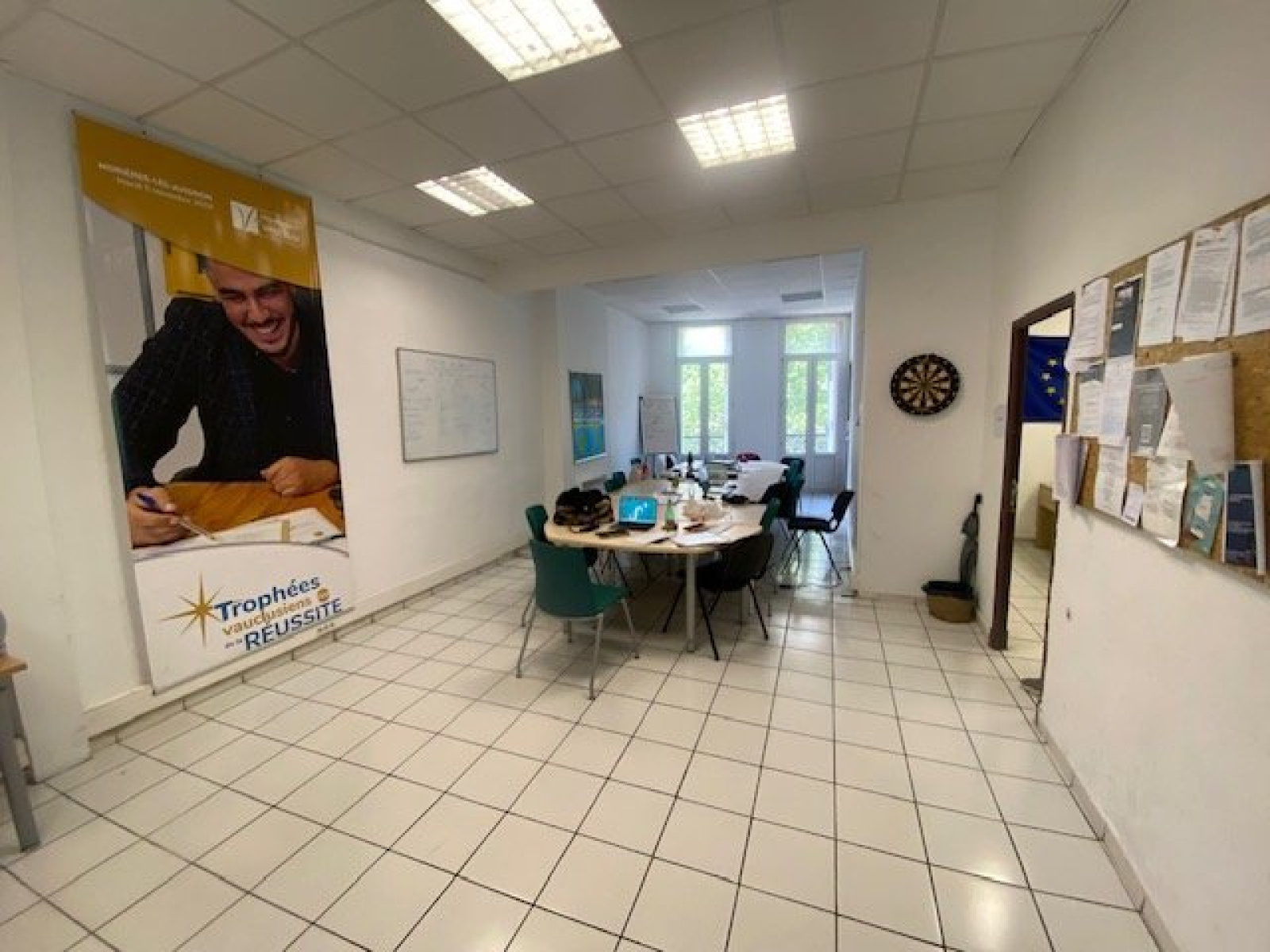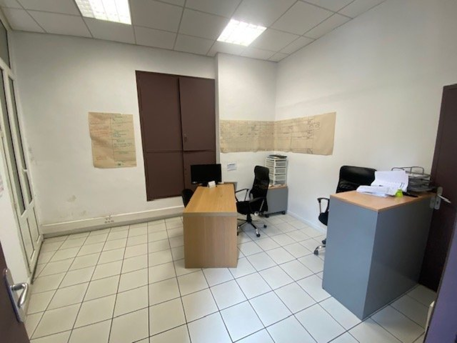 Composé : Open space de 47m², 4 Bureaux de, 1 de 8 m², 1 de 9.5 m², 2 de 13 m², 1 cuisine avec coin repas de 15 m², douche, WC.