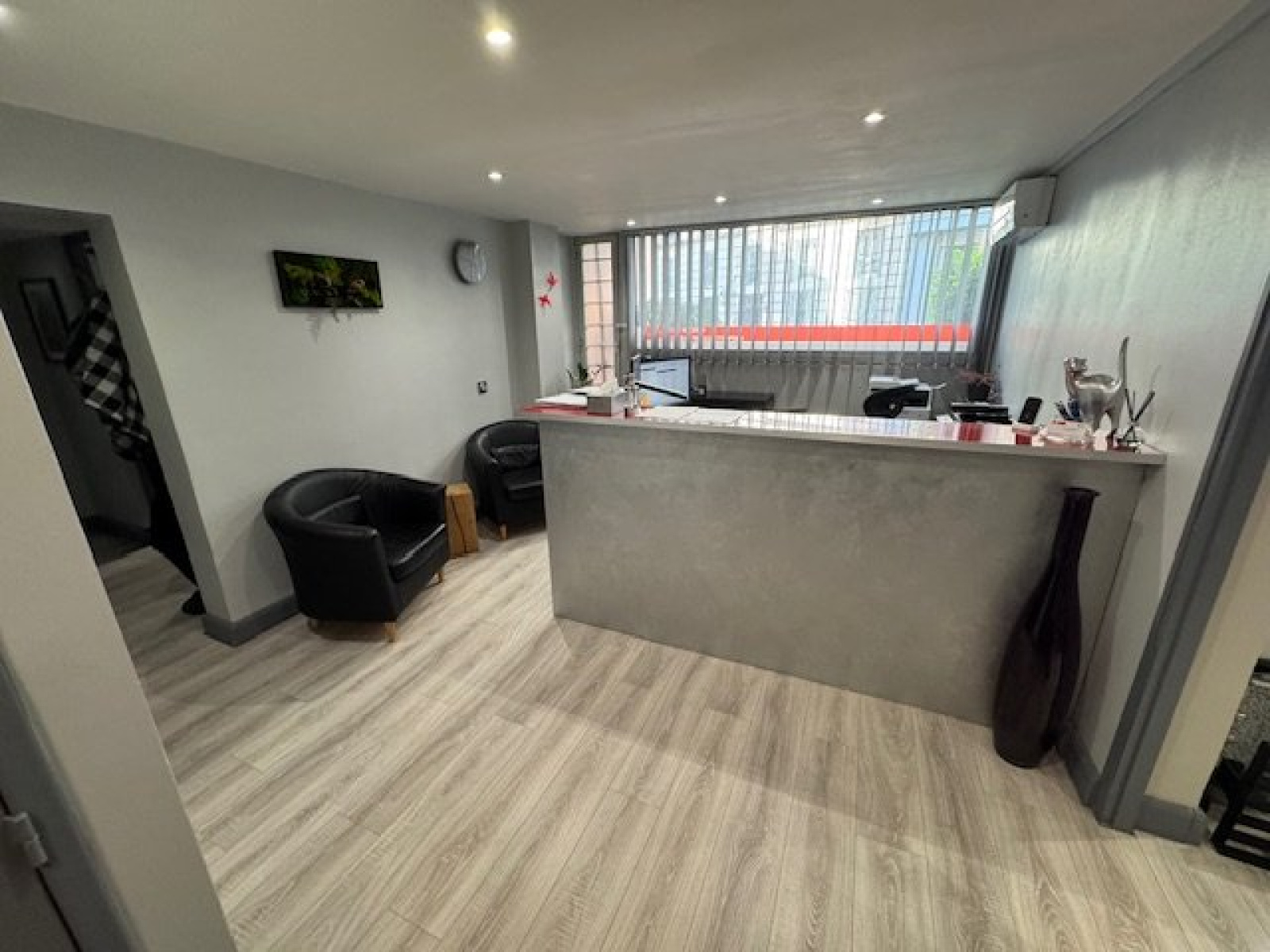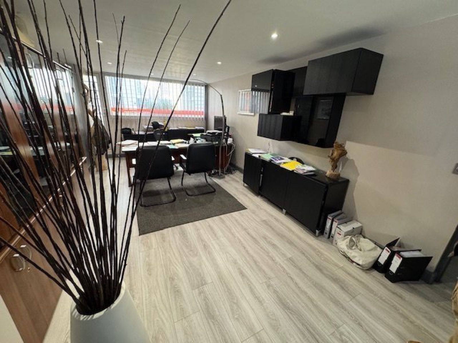 Agencement : Accueil ou salle d’attente de 19m², 3 bureaux 1x31m² 1x13.5m² 1x11m², 1 coin cuisine 4m² et WC avec point d’eau.