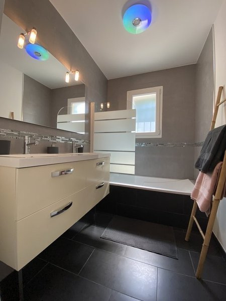 En plus des 80 m2 de la maison, vous aurez à disposition une pièce de 20 m2 (buanderie, garage ou bureau). Loyer: 2000 € + 45 € de provisions de charges. Forfait: 450€