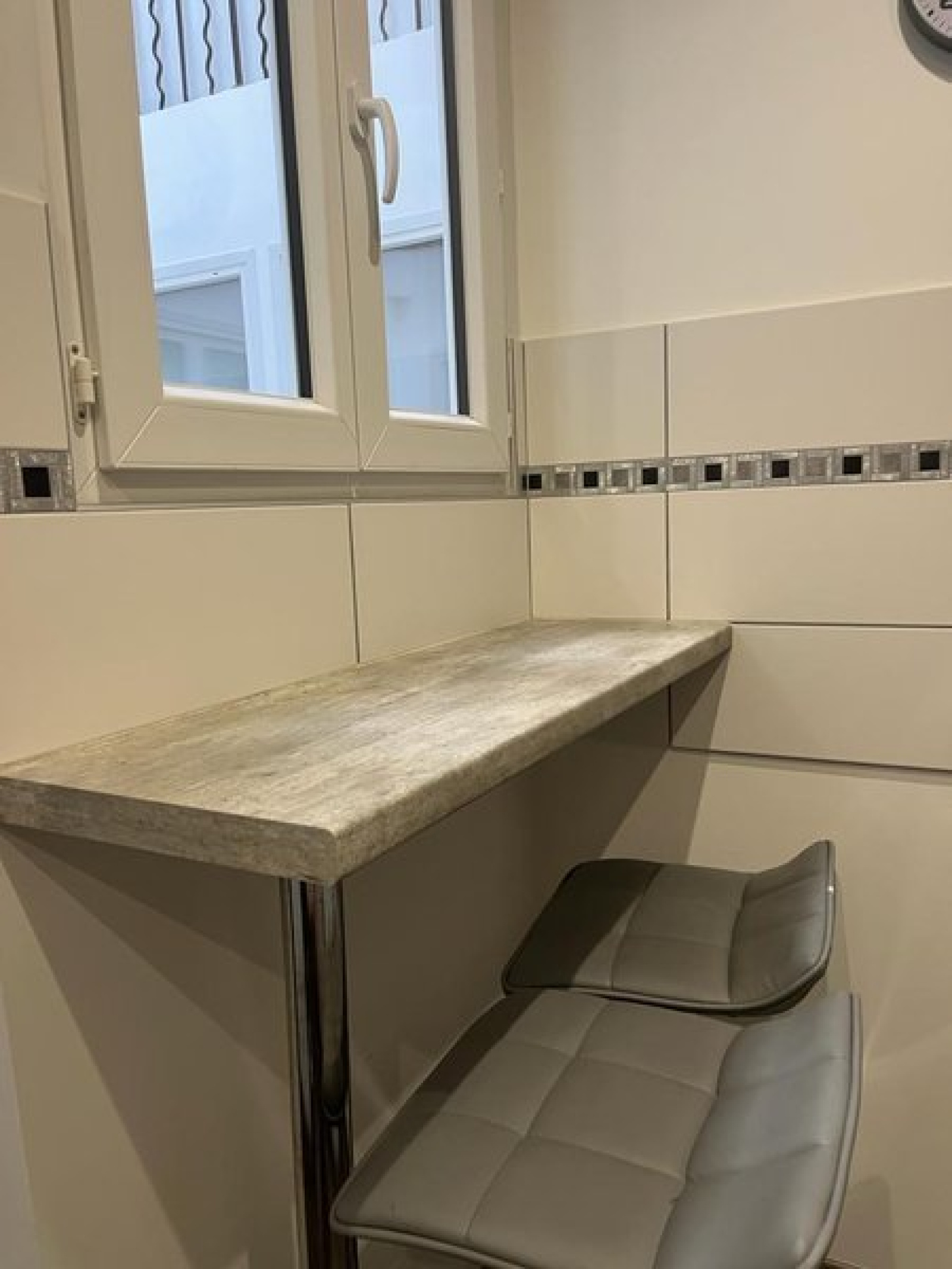La construction est ancienne, en très bon état. Le logement a été refait à neuf. Le sol est imitation parquet. L'exposition est lumineuse et la vue donne sur cour.