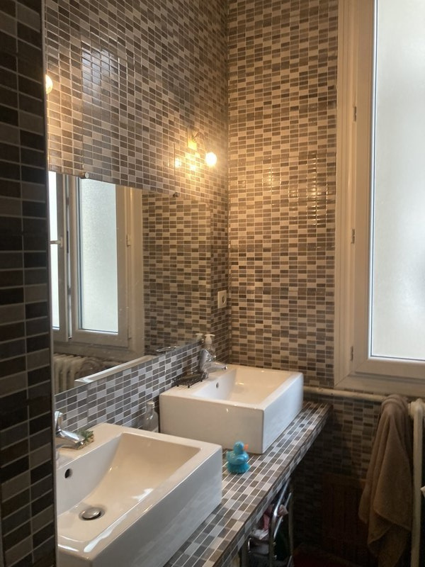 Ce logement en très bon état, issu d'une construction ancienne, offre un séjour, un salon et une cuisine avec accès à un balcon. Il comprend quatre chambres, une salle d'eau et des WC indépendants.