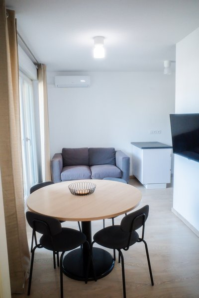 Situé au 3ème étage, ce T2 meublé de 37m² comprend un hall, un séjour et une cuisine ouverte aménagée et équipée (four, micro-ondes, plaques, frigo). Une chambre, une salle de bain et un WC indépendant complètent le logement.