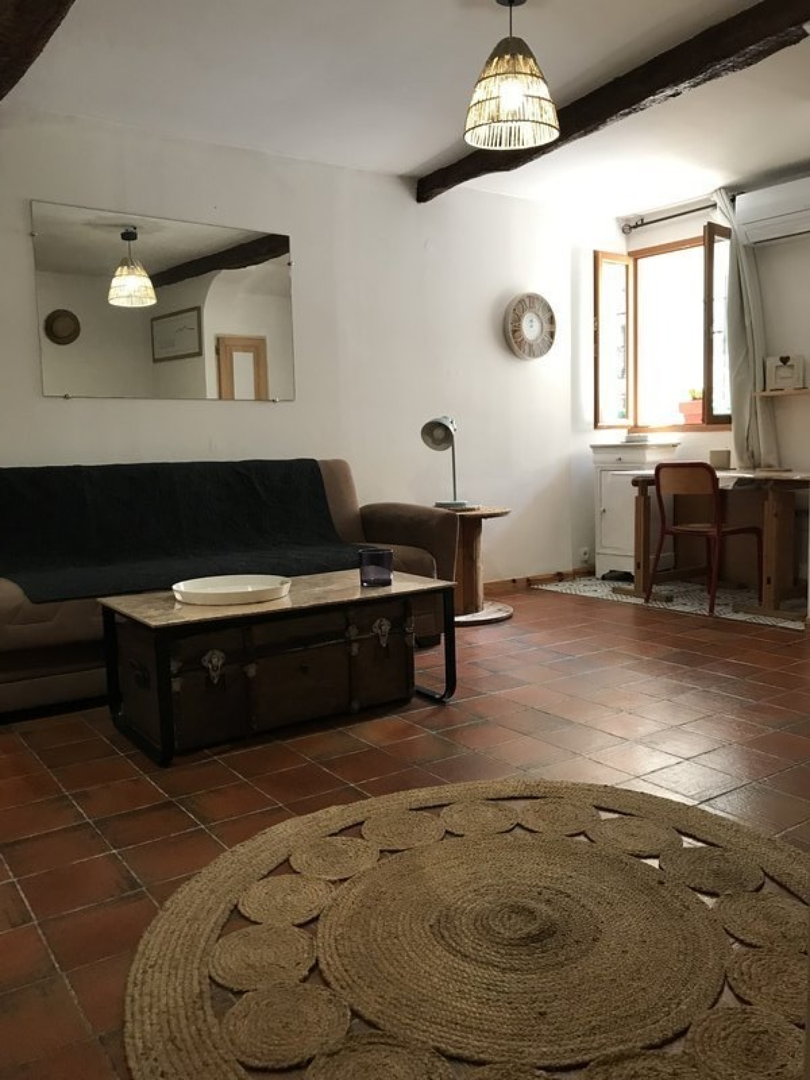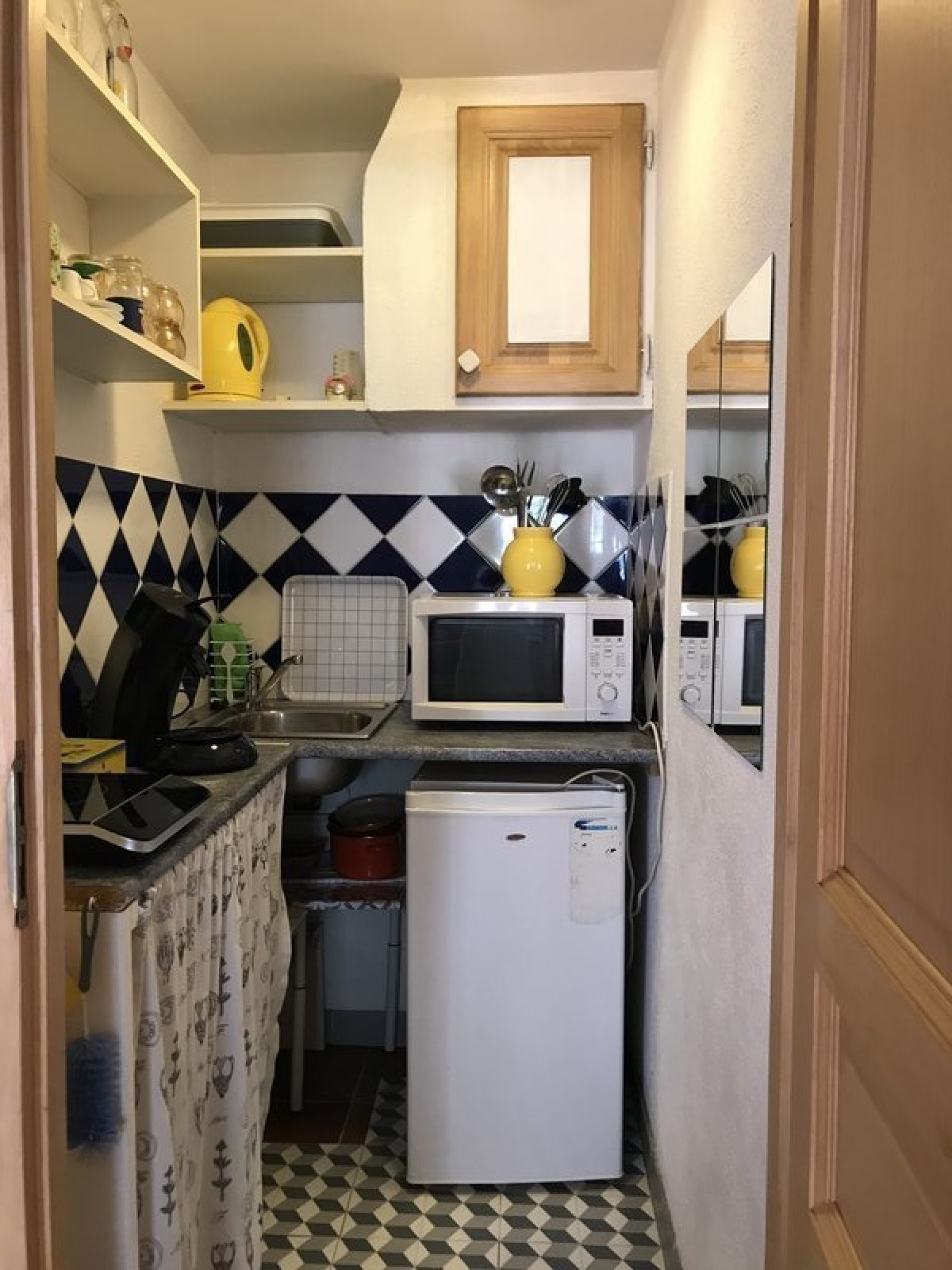Situé en rez-de-chaussée d'une maison de village, ce studio meublé de 28m² se compose d'une pièce principale, d'une cuisine aménagée et équipée (four, micro-ondes, plaques à induction, frigo), d'un dressing et d'une salle d'eau avec WC.