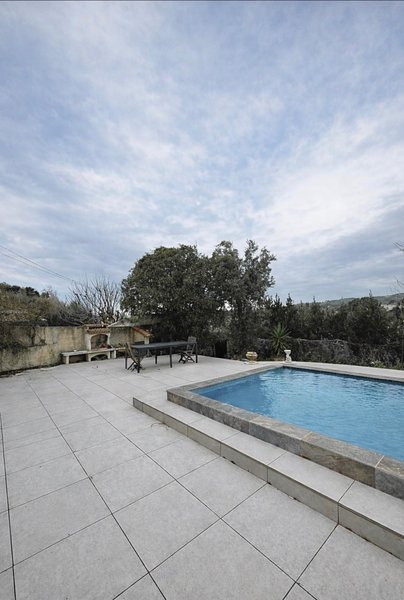 Hall, Sejour, Cuisine ouverte, Suite parentale, Wc indépendant, 2 Terrasses, Jardin de 350 m2 et Garage.