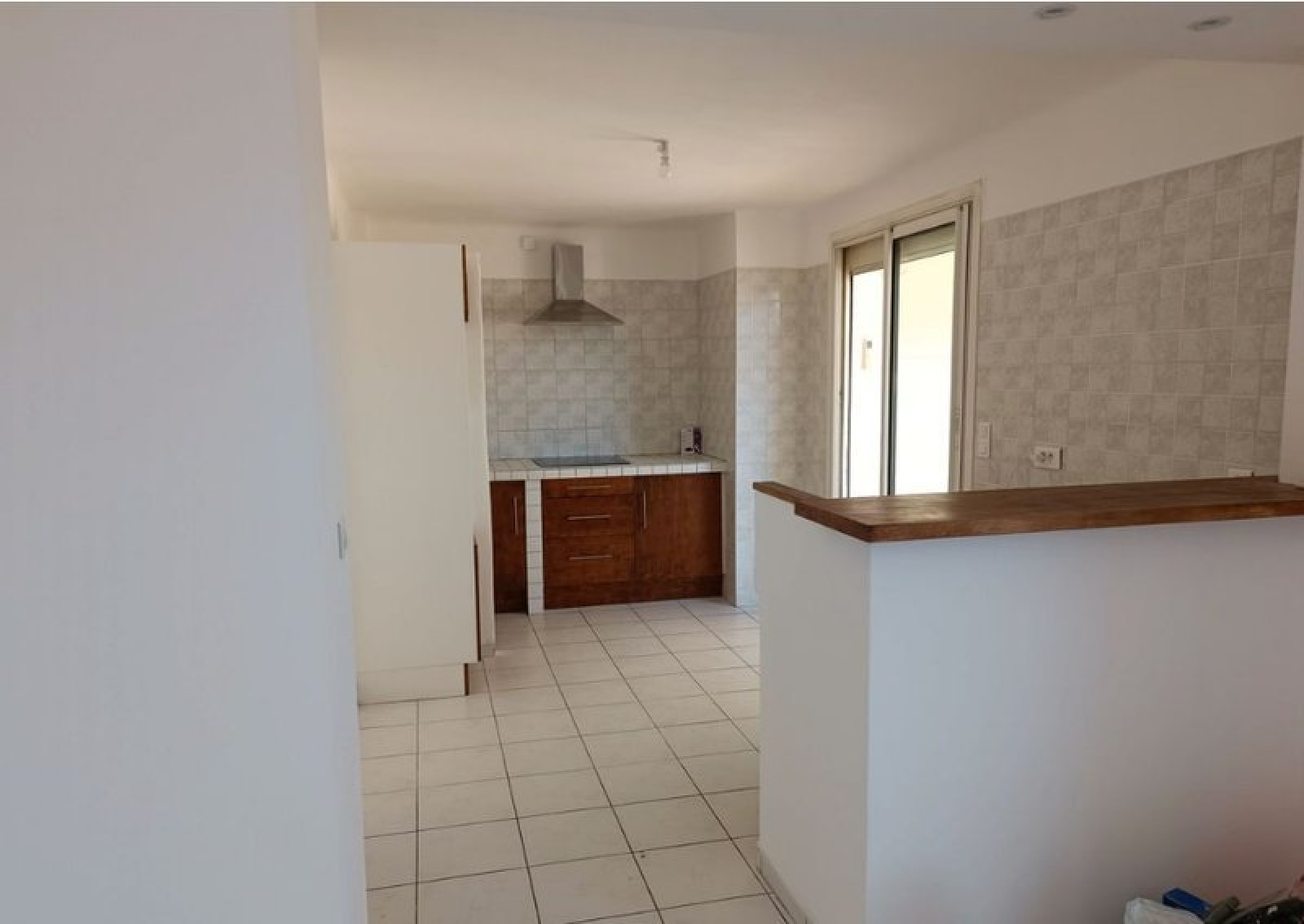 Sejour, Salon (possibilité de faire une chambre), Cuisine ouverte équip avec hotte et plaques. 2 Chambres, salle de bain/douche, Wc indépendant, Terrasse de 20 m2.