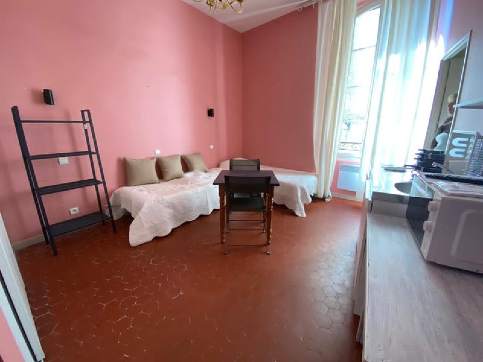 Situé au 1er et dernier étage sans ascenseur, ce studio meublé de 19.62m² comprend une pièce principale avec coin cuisine équipée (plaques, frigo). La salle d'eau avec WC est fonctionnelle.