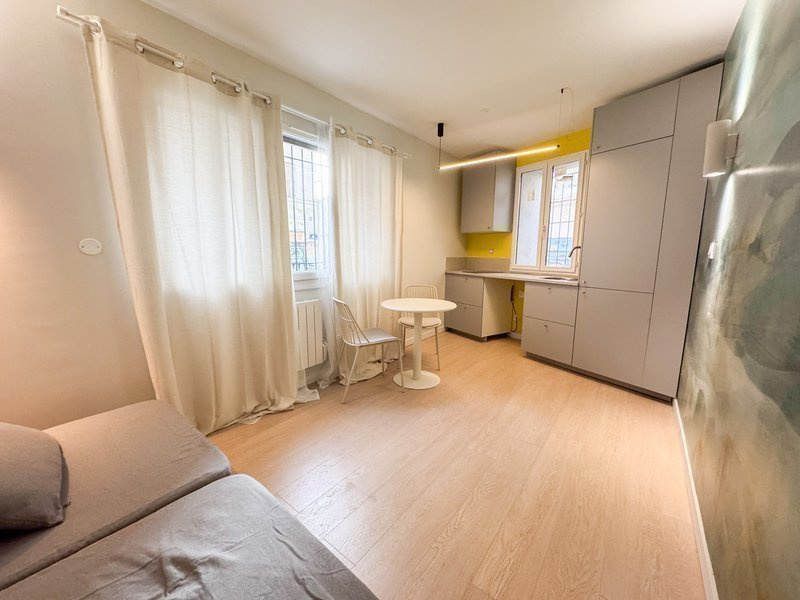 Ce logement, entièrement refait à neuf, comprend un hall, un séjour avec une cuisine aménagée et équipée (hotte, four, plaques, réfrigérateur), une chambre et une salle d'eau avec WC.
