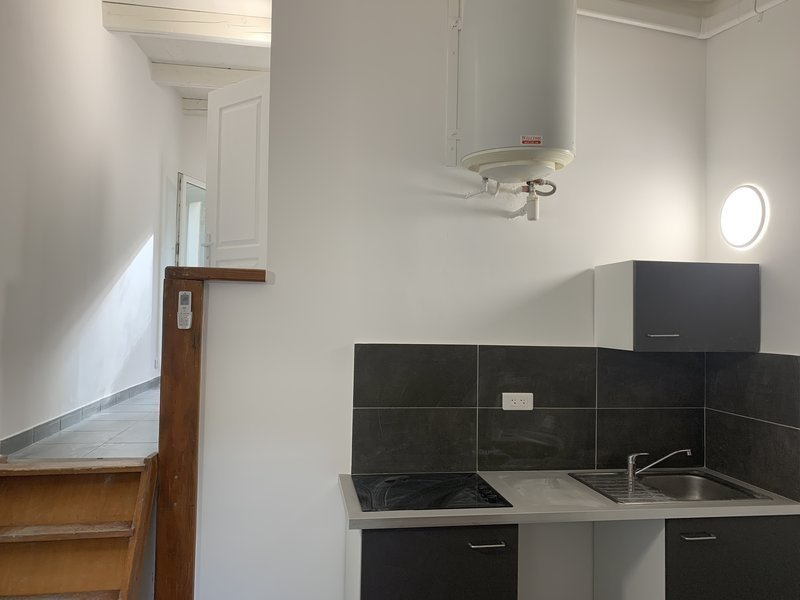 Ce logement est composé d'un hall d'entrée, d'un séjour avec cuisine ouverte aménagée et équipée (comptoir, hotte, plaques), d'une chambre et d'une salle d'eau avec WC à l'italienne.