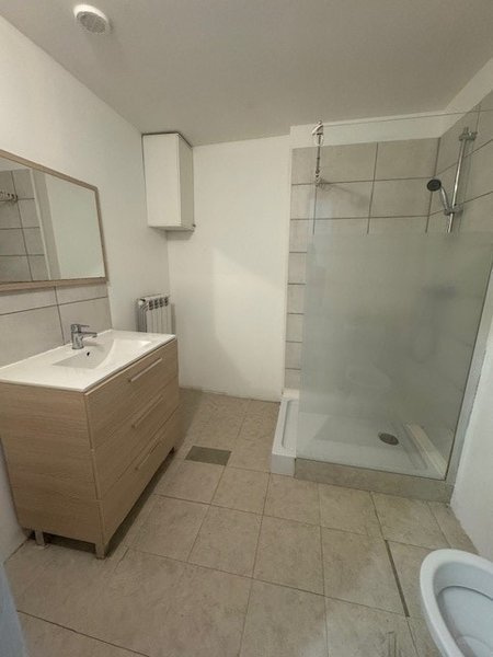 Hall ,Sejour ,Cuisine ouverte. aménagée. et équip. avec congélateur hotte frigo four plaques ,Chambre de 13 m2 ,2 Bureaux de 8 m2, salle d'eau avec wc. Loyer: 800 € + 50 € de provisions de charges. FA: 780€