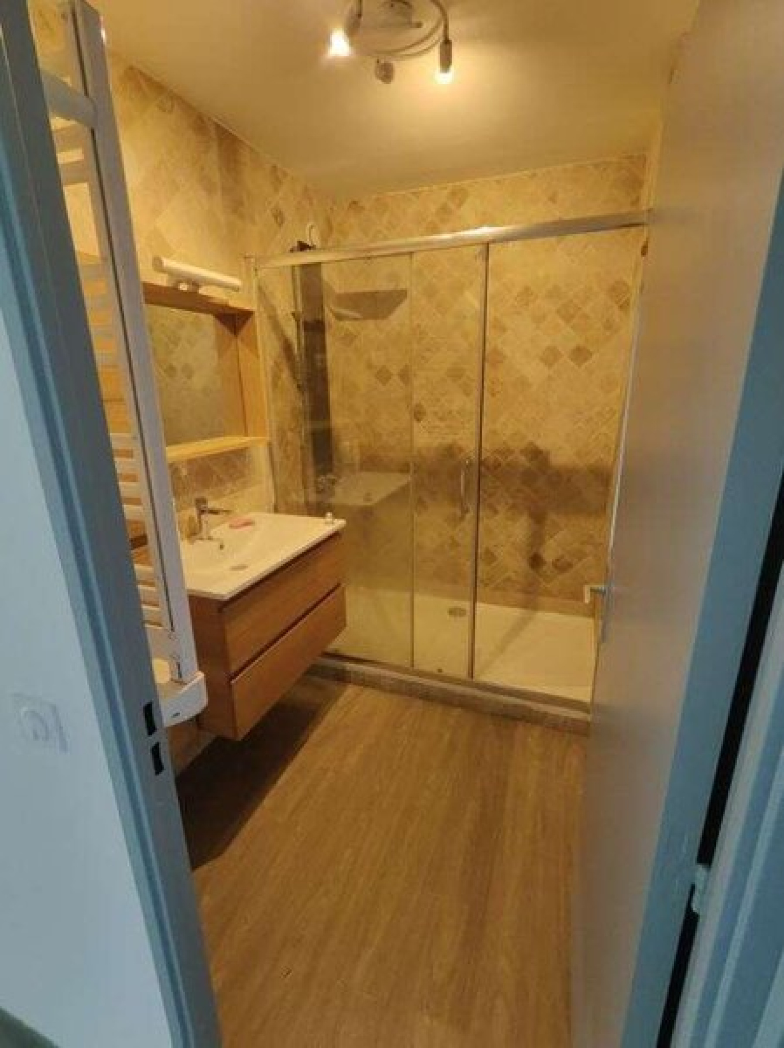 13005 La conception MARSEILLE T3 dans immeuble semi récent avec ascenseur, 65m2 Habitable, Dernier étage Sejour ,Cuisine ouverte. aménagée. et équip. avec hotte plaques ,2 Chambres ,salle d'eau ,Wc ,Balcon ,Terrasse ,garage. eau et Garage inclus Rénové Loyer: 1150 € + 150 € de provisions de charges. Forfait: 450€