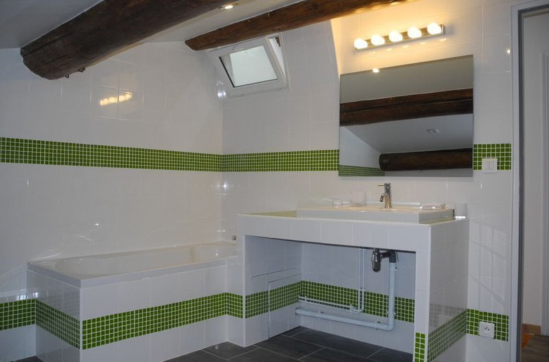 Hall avec placard, Sejour, Cuisine ouverte avec comptoir aménagée et équip avec hotte, frigo, four et plaques. 2 Chambres à l'étage, une salle de bains à l'étage aussi, Wc indépendant au rdc. Loyer: 930 € + 50 € de provisions de charges. Forfait: 450€