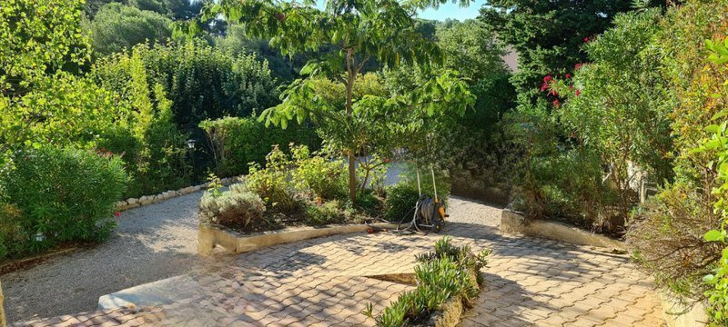 Piscine avec terrasse fermée et jardin arboré sur 620 m²