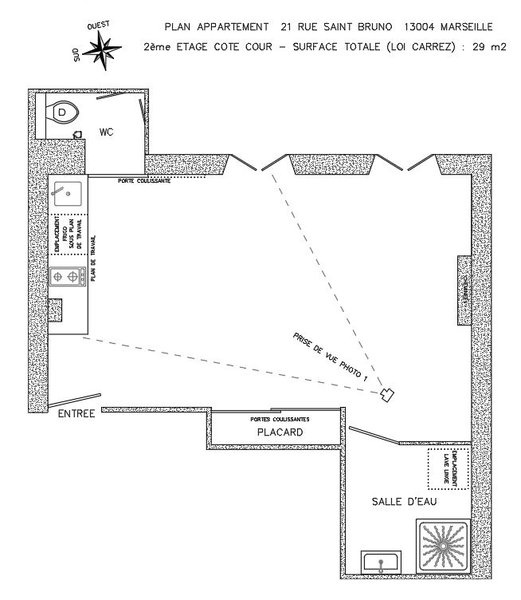 Situé au 2ème étage sans ascenseur, ce T1 de 29m² offre une pièce principale avec cuisine ouverte aménagée et équipée (hotte, plaques). La salle d'eau et les WC indépendants sont fonctionnels.