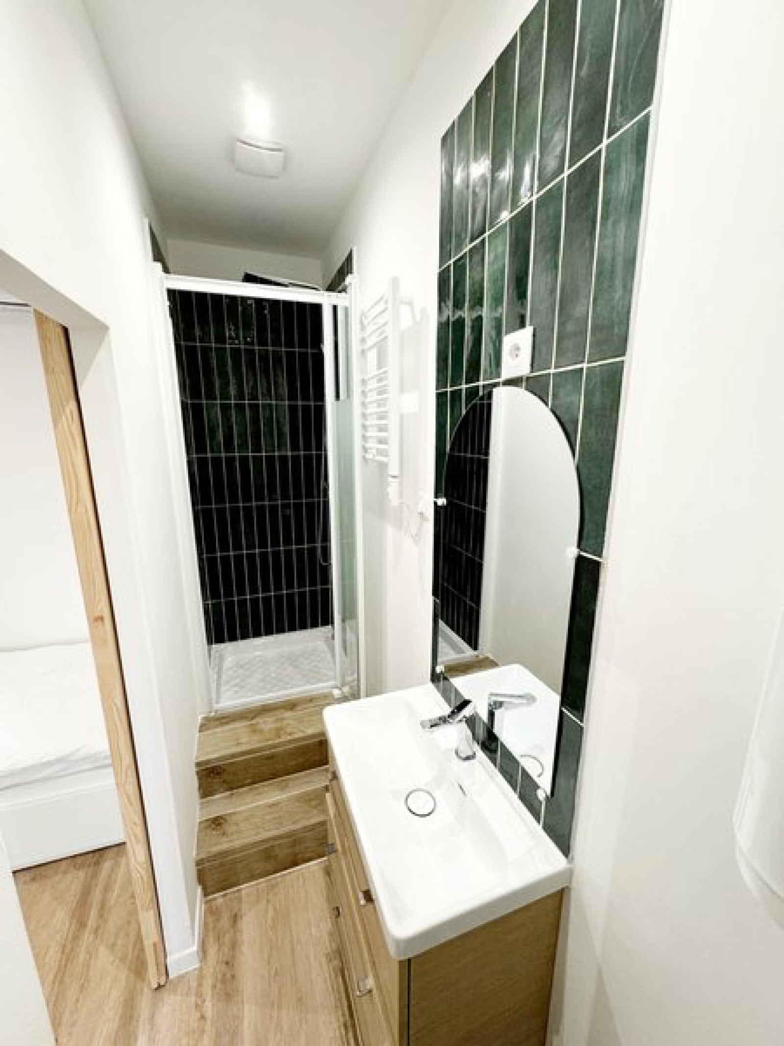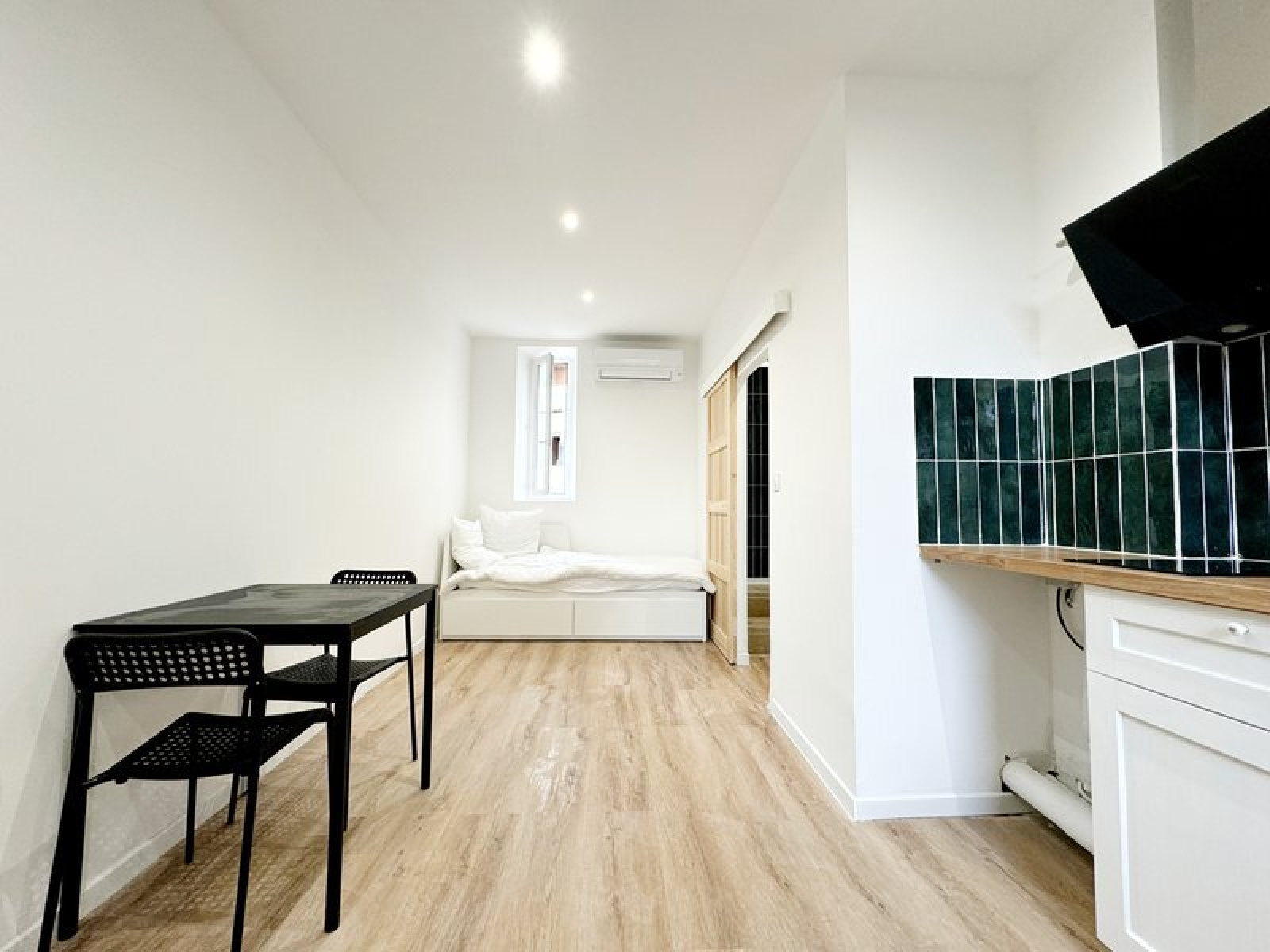 13005 Baille MARSEILLE Studio 17m2 habitable, Piece principale ,Cuisine ouverte. équip. avec hotte plaques ,salle d'eau et wc à l'intérieur, R.neuf. Loyer: 650 € Frais bail: 250 €. Forfait: 350€
