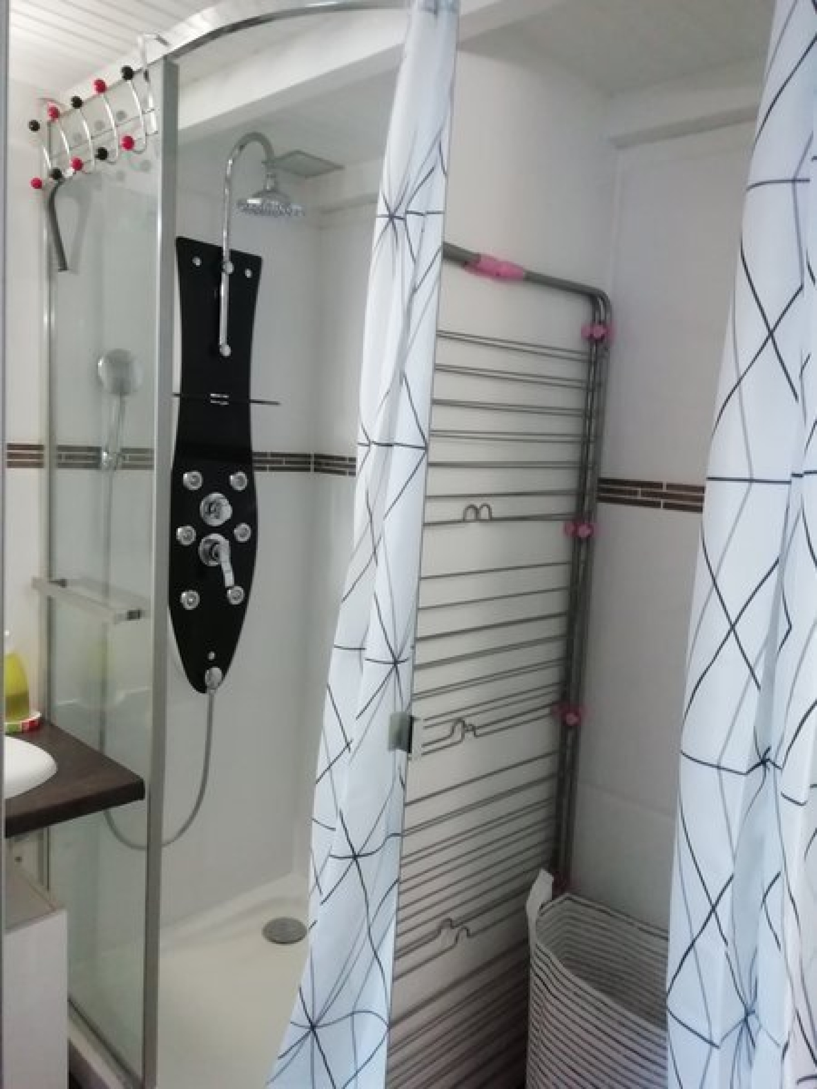 Ce logement se compose d'une pièce principale avec penderie, d'un coin cuisine équipé (four, micro-ondes, plaques, frigo, hotte), d'une mezzanine servant de couchage, d'une salle d'eau avec WC.