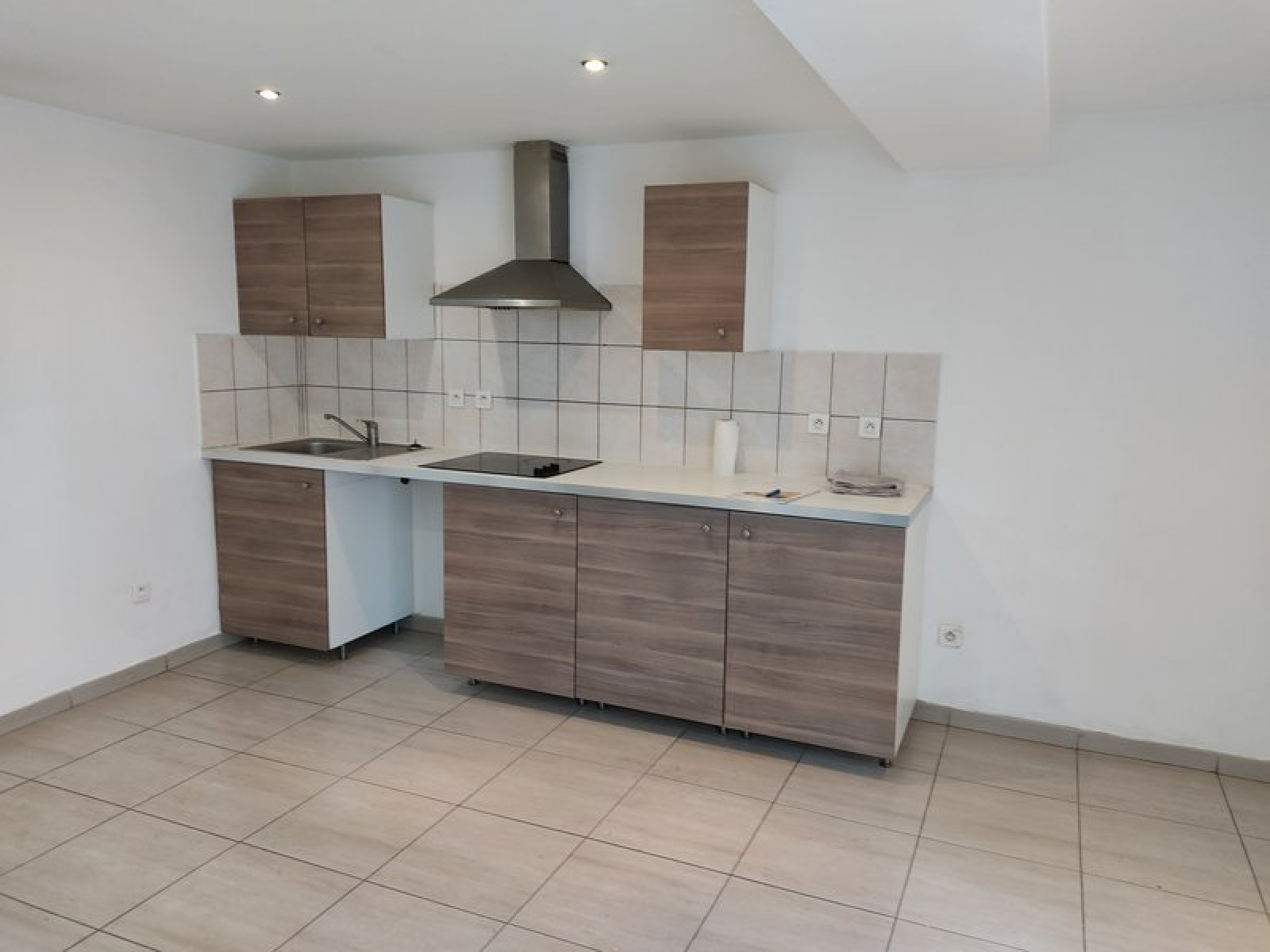Ce logement est composé d'un hall d'entrée, d'un séjour avec cuisine ouverte aménagée et équipée (comptoir, hotte, plaques), d'une chambre et d'une salle d'eau avec WC à l'italienne.