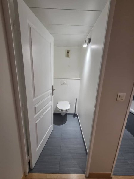 L'appartement se compose d'un séjour avec cuisine ouverte aménagée et équipée (hotte, four, plaques, frigo, lave-linge, lave-vaisselle, sèche-linge), de trois chambres, d'une salle d'eau, d'une salle de bain et de deux WC indépendants. Un cellier offre un espace de rangement supplémentaire.
