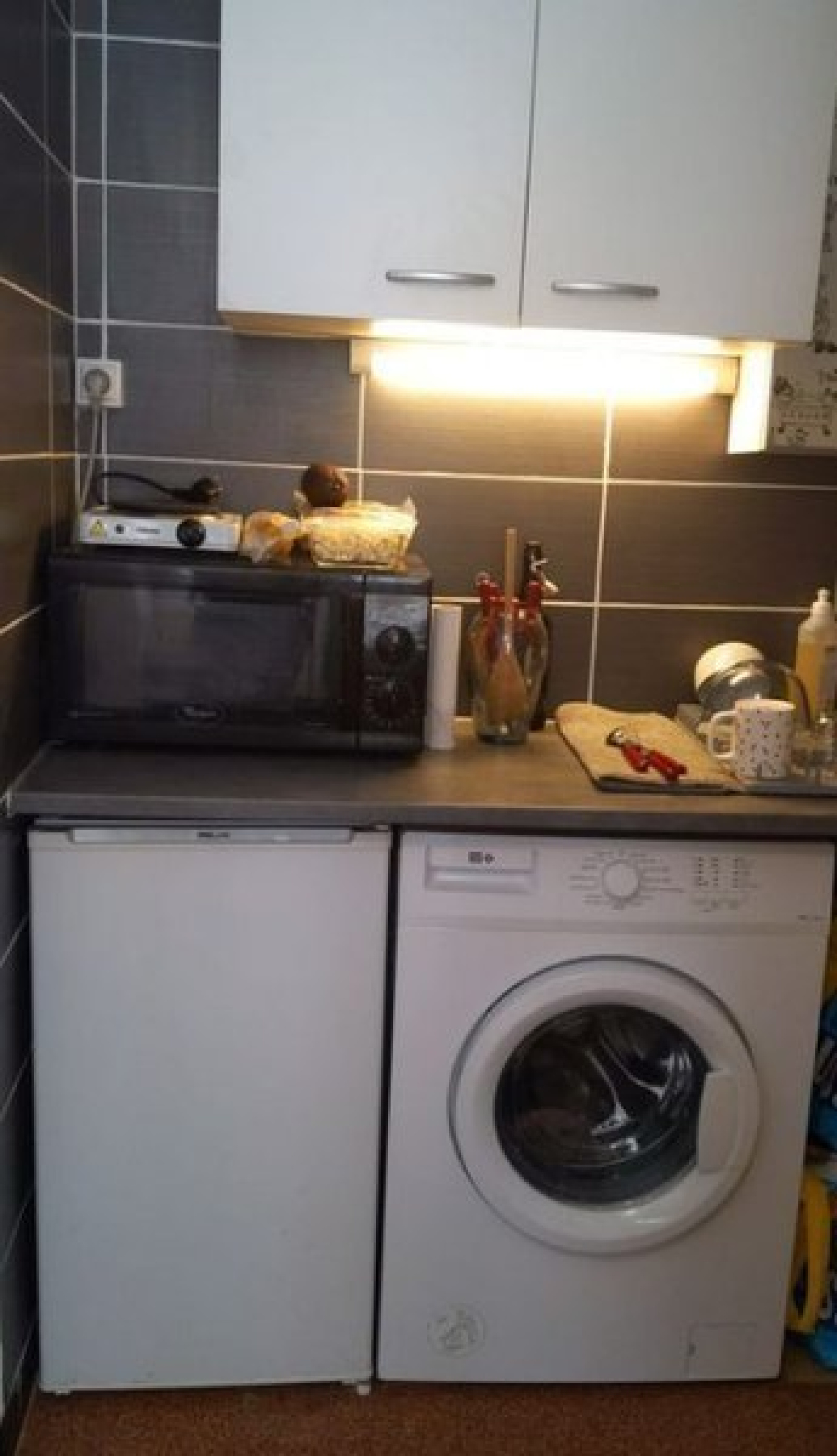 Ce logement comprend une pièce principale et un coin cuisine aménagé et équipé (micro-ondes, plaques, frigo). Il dispose d'une salle d'eau. Les WC sont indépendants sur palier commun.