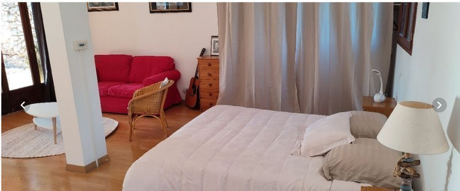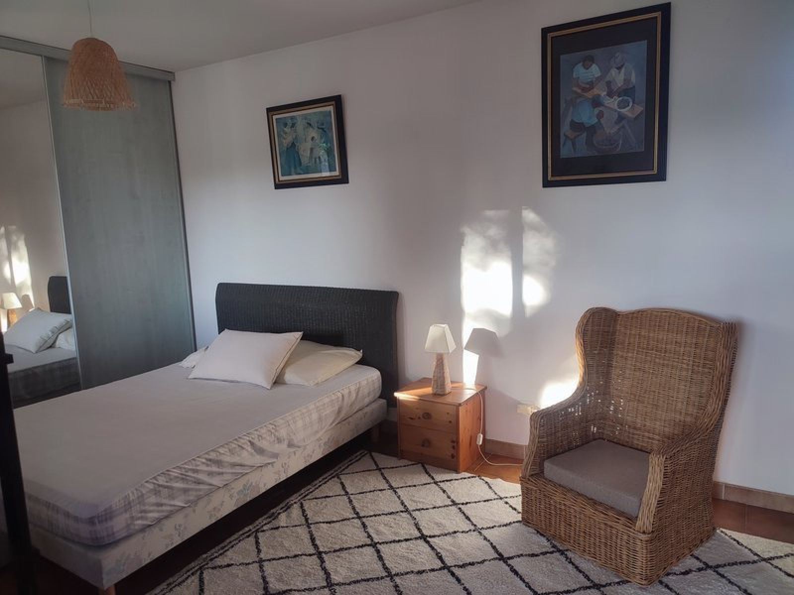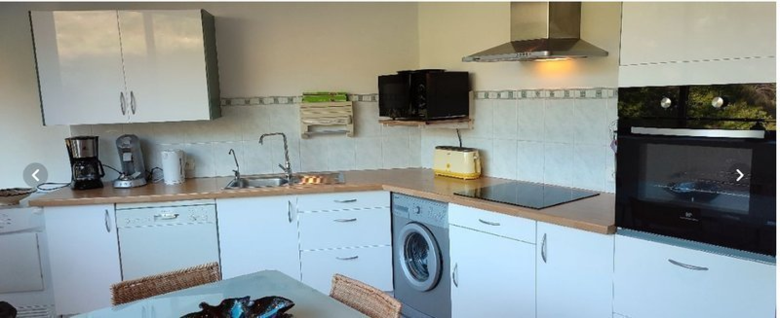 Le séjour comprend un coin nuit confortable, et une cuisine aménagée et équipée de divers équipements : hotte, four, micro-ondes, plaques à induction, réfrigérateur, lave-linge et lave-vaisselle. Une chambre est située à l'étage et la salle d'eau est dotée de WC.