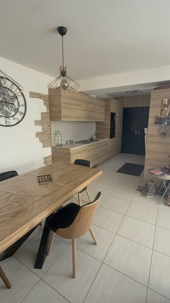 Le logement donne accès à un séjour, une cuisine commune aménagée et équipée (hotte, four, plaques, frigo, lave-linge, sèche-linge), une salle d'eau avec douche à l'italienne et des WC indépendants.