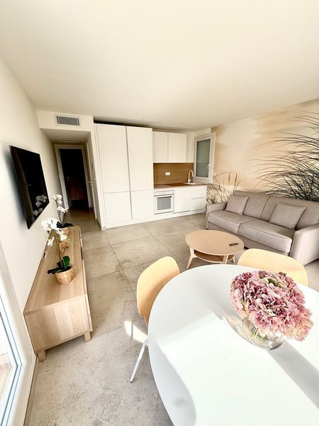Sejour ,Cuisine ouverte. aménagée. et équip. avec hotte four plaques ,2 Chambres ,2 salles d'eau ,Wc indépendant ,Jardin de 100 m2, très bon état. Loyer: 1550 € + 50 € de provisions de charges. Forfait: 450€
