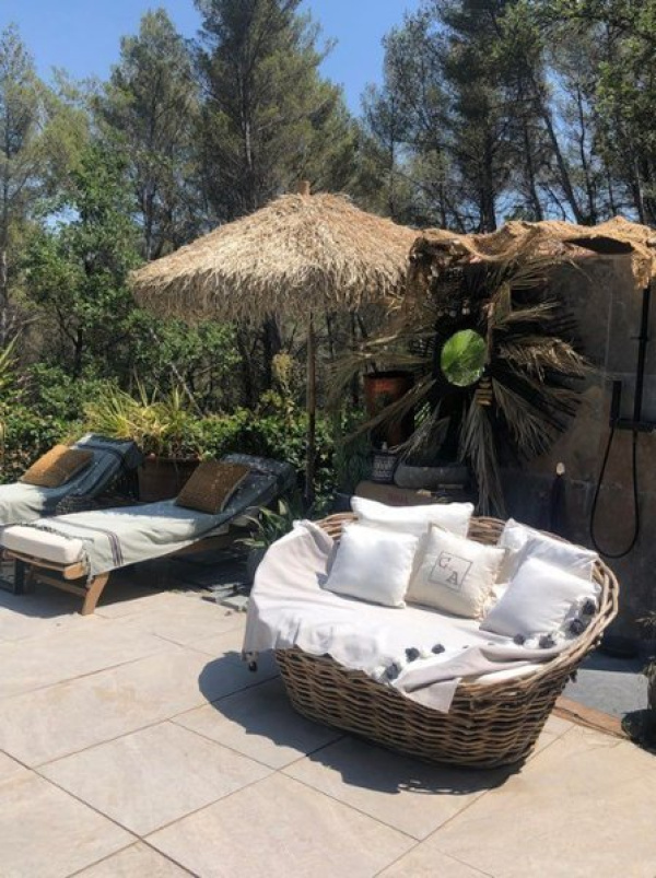 L'extérieur de la maison est tout aussi impressionnant, avec une grande piscine offerte de transat pour profiter au mieux du soleil. Il y a également un barbecue weber pour les soirées en famille ou entre amis, ainsi qu'une table à manger pour les repars en plein air.