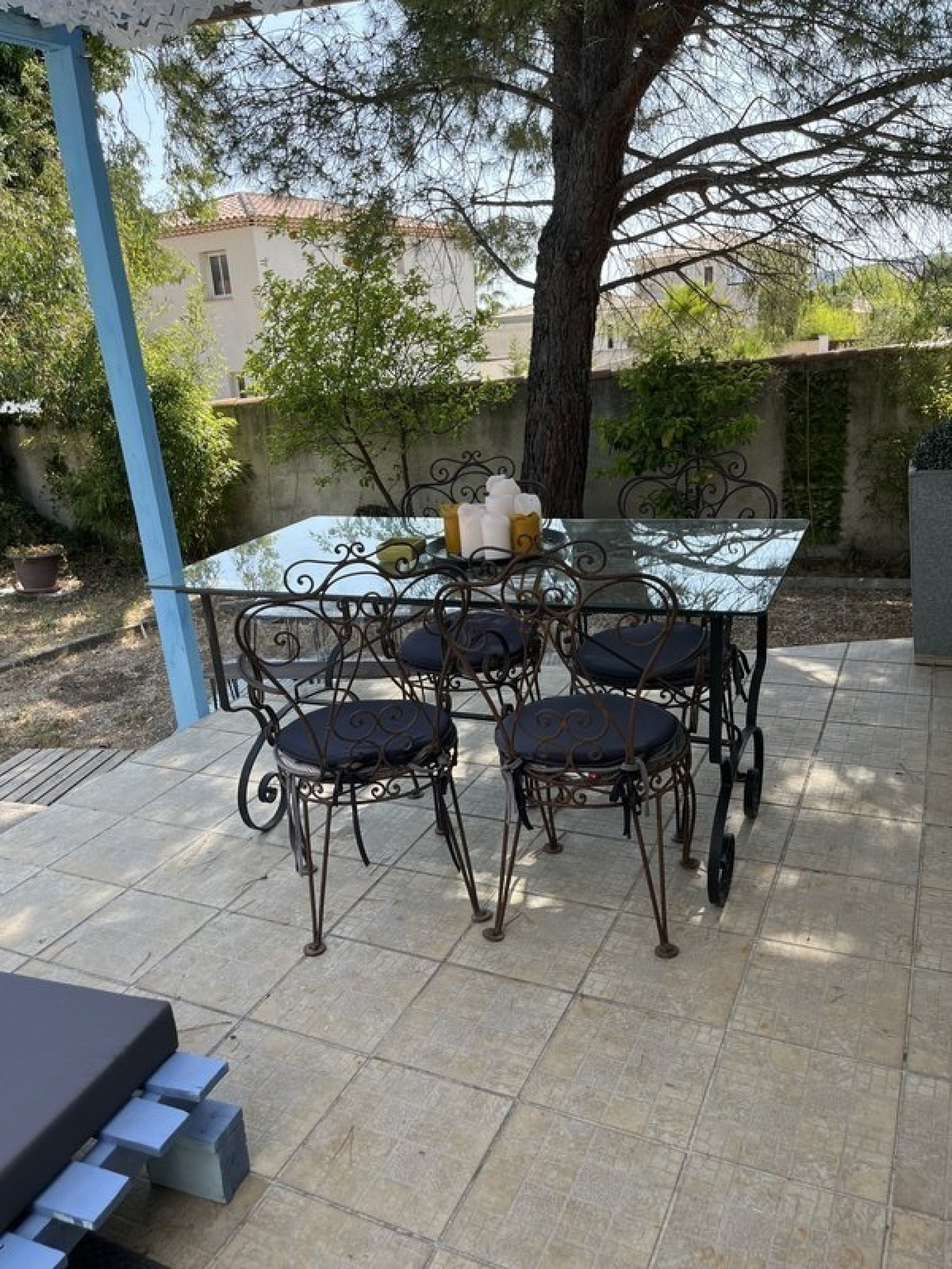 Sejour, Cuisine équip, 2 Chambres, salle de bains, Wc indépendant, Piscine,Terrasse, Jardin de 1095 m2, Parking en extérieur pour 5 voitures. Loyer: 1700 €. Forfait: 450€