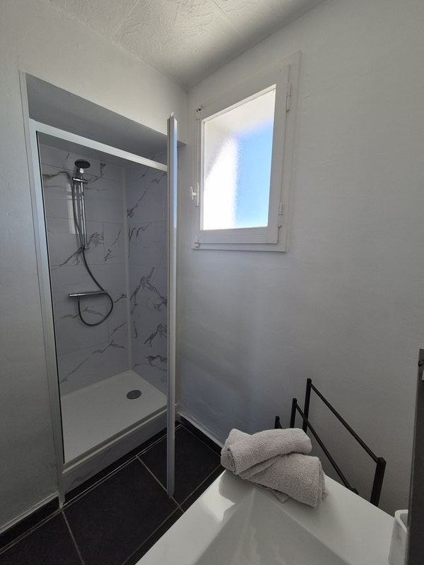 Ce bien se compose d'un hall, d'un séjour, d'une cuisine aménagée et équipée (hotte, four, micro-ondes, plaques vitrocéramiques, frigo), de deux chambres, d'une salle d'eau et de WC indépendants. Un cellier avec lave-linge est également disponible.