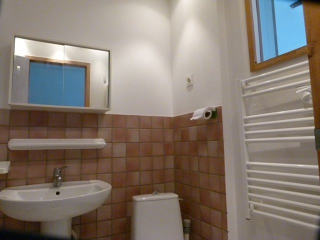Il se compose d'un séjour avec une cuisine ouverte équipée comprenant une hotte et des plaques de cuisson, d'une chambre avec placard et d'une salle d'eau avec wc, ainsi qu'un sèche-serviette. Le chauffage est électrique.