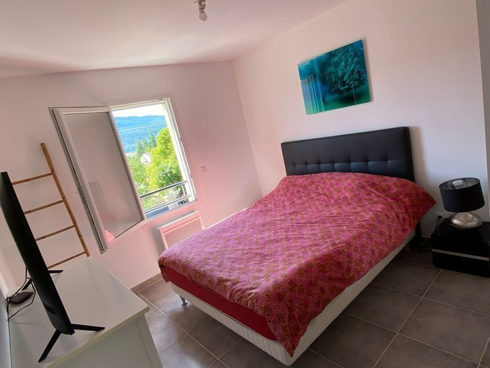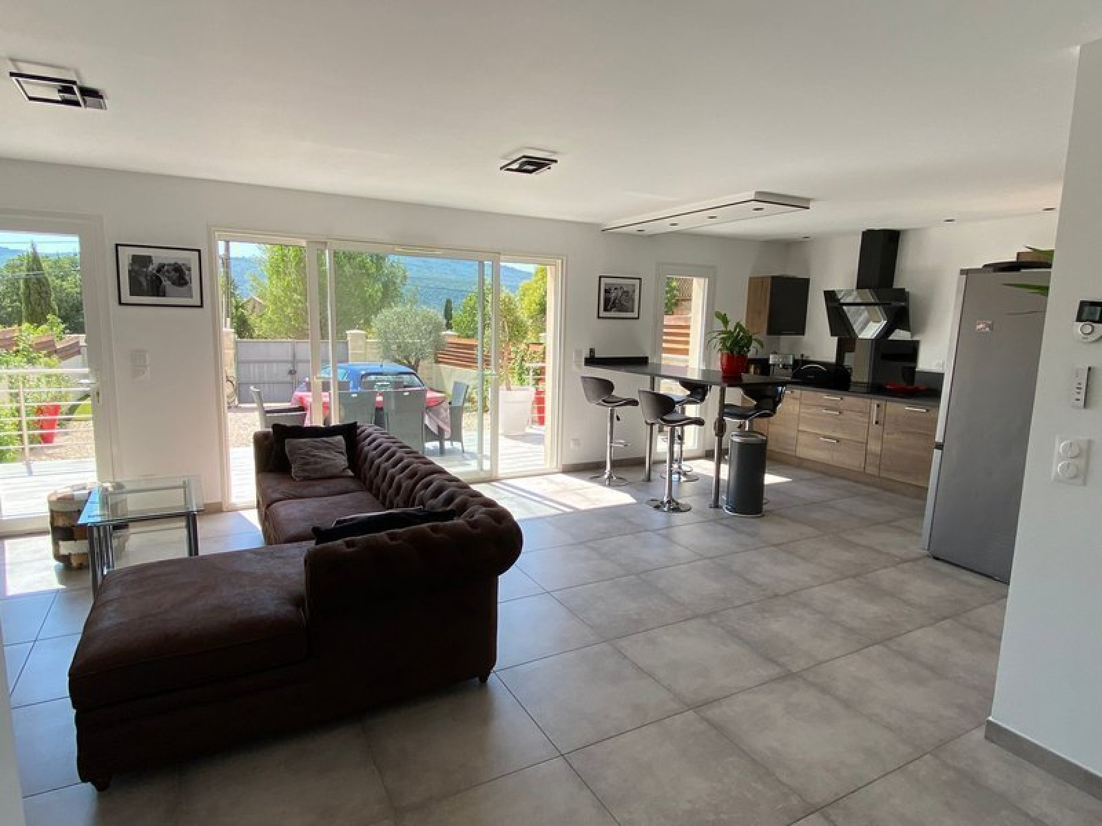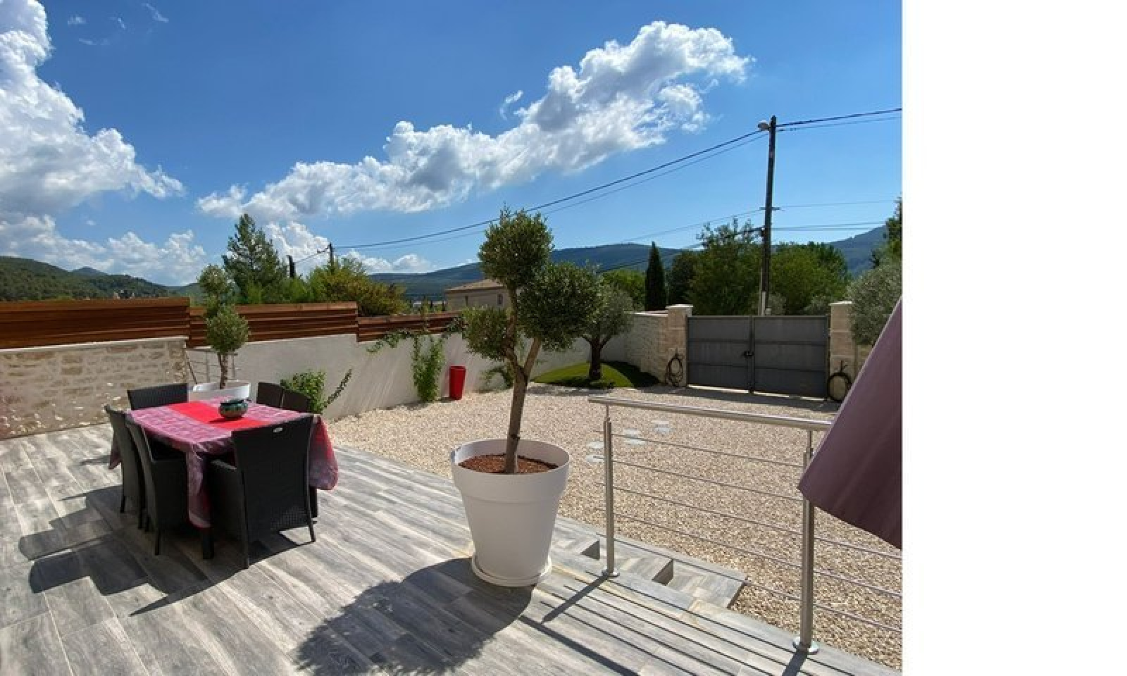 Avec terrain de boules, et pelouse synthétique. Loyer: 1590 €. Forfait: 450€