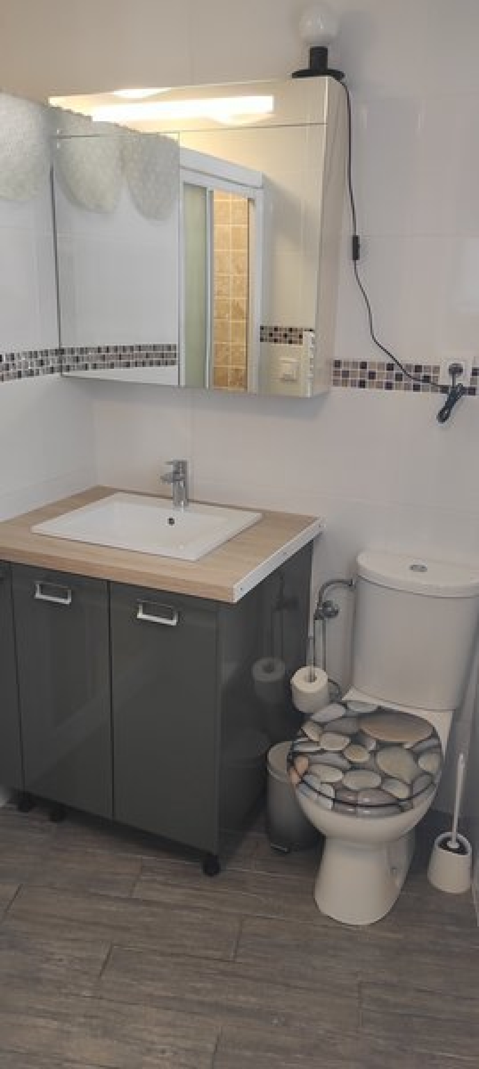La construction est ancienne et en bon état. Le logement est en très bon état, avec un sol en carrelage.