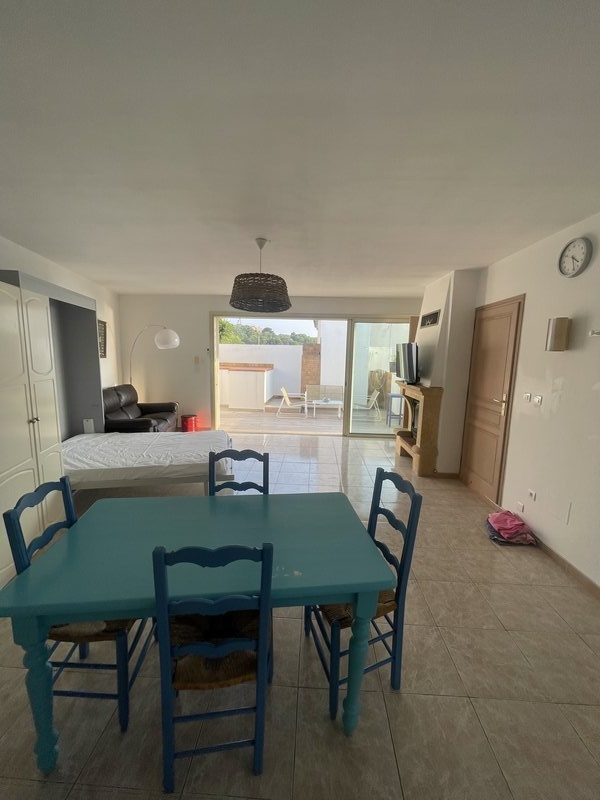 13117 LAVERA ds Villa LOFT 40m2 habitable, Sejour canapé, table, 4 chaises, tv, armoire, buffet.. ,Cuisine ouverte avec comptoir. aménagée. et équip. avec frigo micro-ondes plaques avec lave linge + lave vaisselle ,salle de bains et wc à l'intérieur ,Terrasse 15 m2. Eau edf Chauffage inclus plein sud vue mer Neuf