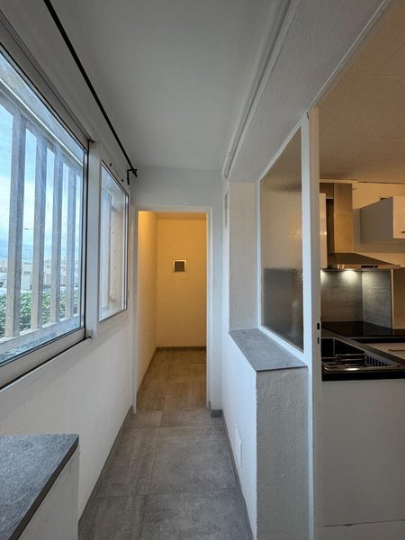 LE BEL-AIR 13013 MARSEILLE – T2 traversant de 52 m² entièrement refait à neuf, 4ème étage avec ascenseur. Appartement lumineux et traversant, sans vis-à-vis, comprenant : - Cuisine séparée et entièrement équipée. - Sejour de 23 m² - Chambre de 12 m² - Salle de bain spacieuse avec WC - Balcon de 7 m² - Cave et coursive privative - Placards intégrés, double vitrage, climatisation réversible, fibre optique L'immeuble dispose d'un ascenseur et d'un gardien, et est situé à proximité des commerces, écoles, bus et métro. L'électricité a été entièrement refaite aux normes, et l'appartement bénéficie d'une bonne isolation phonique et thermique. Loyer: 715 € + 135 € de provisions de charges. Forfait: 410€ - DPE en cours -
