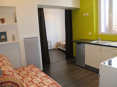 Sejour, Cuisine aménagée et équip avec frigo et plaques. Chambre, salle d'eau, Wc indépendant, Jardin de 200 m2, Parking.
